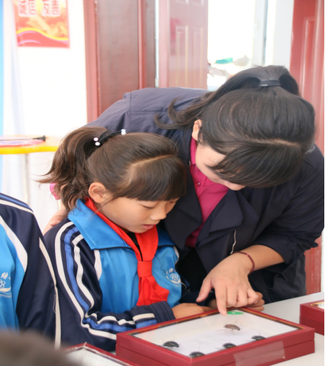理学院结合自身学院特色,为孩子们带来了生物标本,刘宇飞老师,刘紫涵老师共同为孩子们讲解生物标本的制作过程。