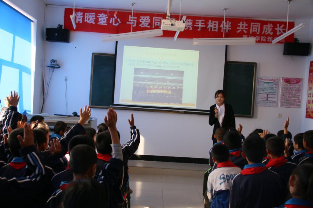 黑龙江省首个“周恩来班”班长王蕾同学结合自身大学生活经历,为62名留守儿童进行了主题为《加油吧,孩子们未来是你们的》的励志讲座,深受学生喜爱,更激发了学生对大学生活的向往。