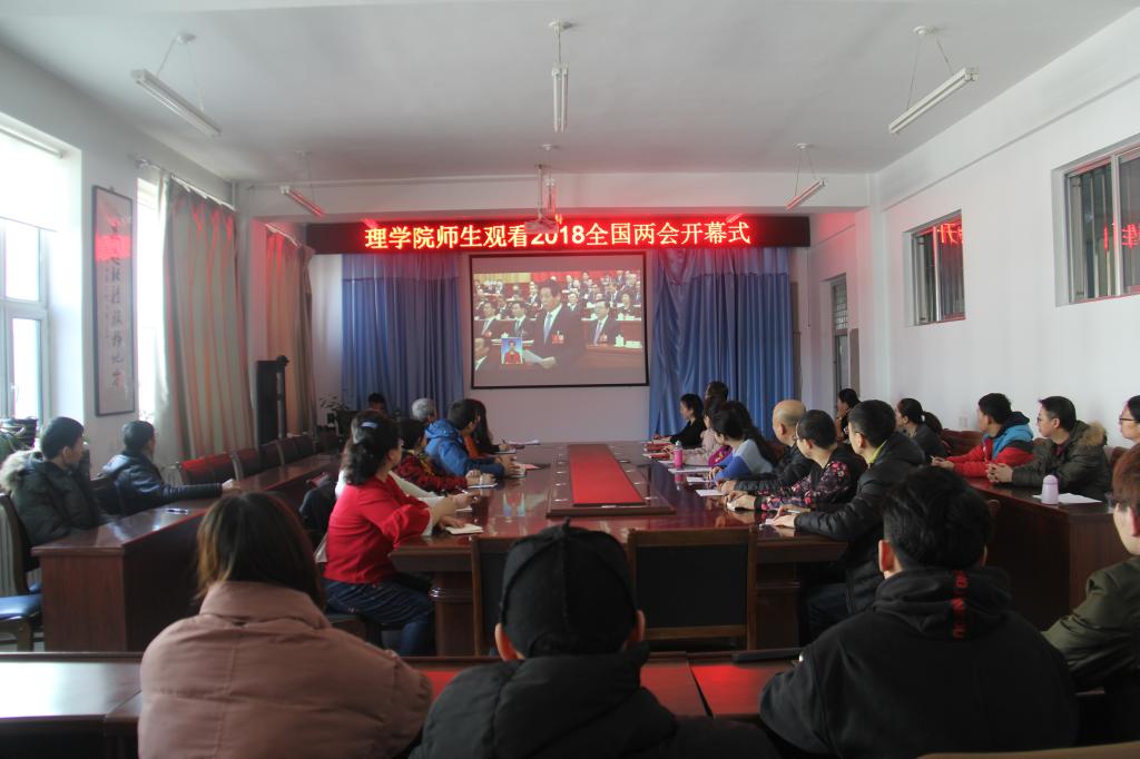 2018年3月5日,春回大地,全国两会已经启幕。理学院师生共同观看两会开幕式,从党的十九大到全国两会,党的十九大精神特别是习近平新时代中国特色社会主义思想通过各种形式在理学院宣传,不断师生激起共鸣。新的历史方位,新的思想坐标。理学院师生向着光明的未来阔步前行!