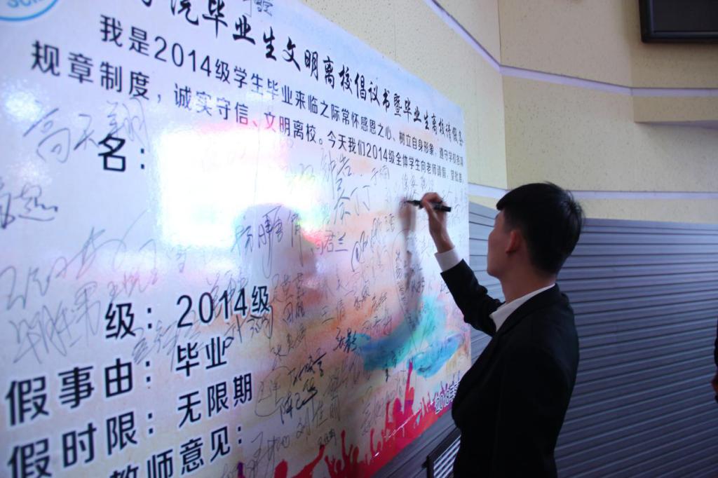 本次晚会有许多精彩的亮点,其中最大的亮点是毕业生入场签名留念环节,每位毕业生在签字板上写下自己的名字,标志着大学生涯的结束,也意味着新的生活即将来到。大气、奔放的开场舞点燃了观众的热情,俗话说得好:“台上一分钟,台下十年功”,小品《白蛇前传》的演员们用专业幽默的表演赢得了现场观众的笑声,将晚会的气氛一次次推向高潮,一曲曲动听的歌曲把毕业生们的记忆带到了刚上大学的时候,眼前闪现出一幕幕美好的大学记忆......最后一首《不说再见》引起了全场师生的合唱,我们永不说再见,踏上远方,继续前行。