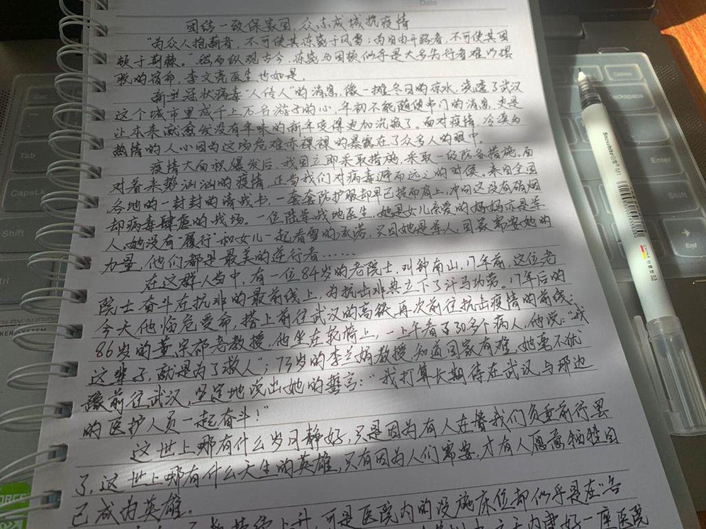 抗击新型冠状病毒肺炎早已不是武汉的医务人员的责任,而是所有人的责任。面对疫情的蔓延,“支援武汉”、“守住阵地”已成为全国人民的共同心声。全国人民群策群力,武汉的火神山医院短短9天就修建成功投入使用;多家企业、各行各业也积极捐款捐物,贡献自己的力量。