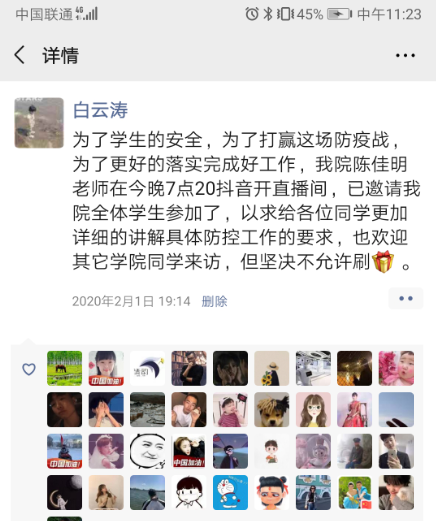 近期,在全国范围内爆发的新型冠状病毒肺炎牵动着每一个人的心,作为大学生,不出门、不传谣、不提前返校,这是每名学子的责任,更是应有的担当。在此期间,结合防疫工作的特点和要求,理学院始终坚持通过“互联网+管理”的模式,开展各项调查研究,对学生进行深入了解,排解学生心理情况以及生活中的实际困难,号召全体学生关注实时新闻,了解疫情现状,同时举办了形式多样、内容丰富的假期实践活动,通过抒写正能量网文、录制小视频等形式使同学们真正的懂得珍惜生命、关爱生命,提高了当代大学生的责任感、使命感,同时增强学生们对抗击疫情胜利的决心与信心。