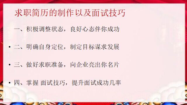 本次培训,王佳宜老师围绕就业心态、自身定位、求职材料制作、线上面试技巧四部分展开。