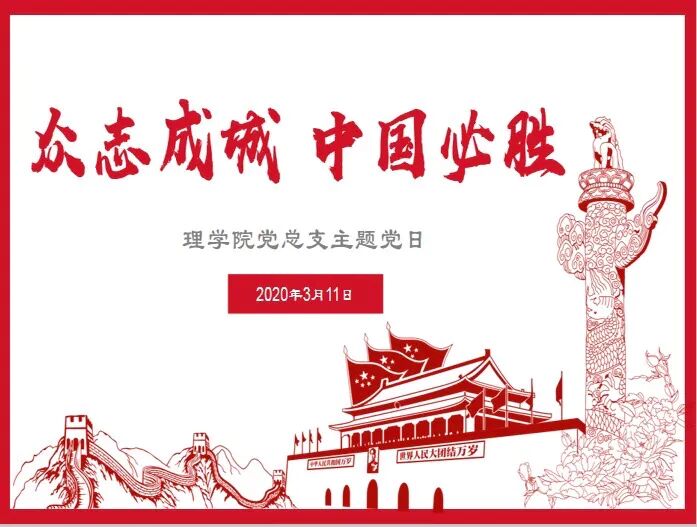 理学院党总支首次线上主题党日活动在一首励志歌曲《党旗飘扬的方向》中拉开帷幕。首先,行政党支部书记孙丽男同志带领全体党员学习3月10日习近平总书记赴武汉考察疫情时的讲话。