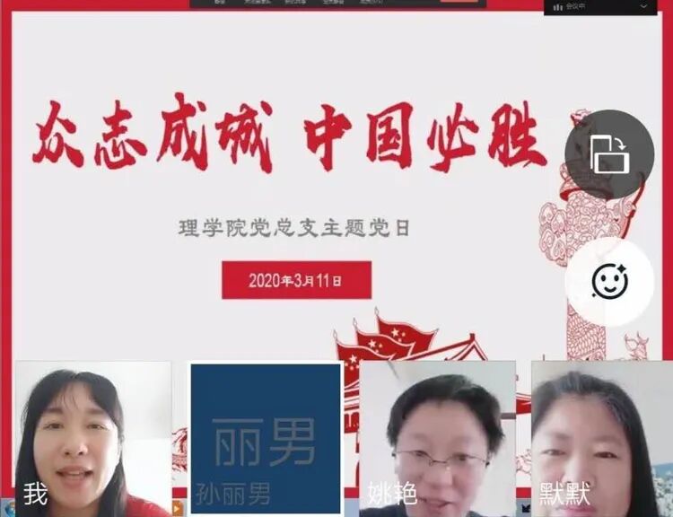 理学院行政党支部书记孙丽男同志按照理学院党总支书记李珊同志的工作安排,负责本次主题党日活动的策划和主持工作。在策划活动流程,活动细节以及活动学习资料收集,影音资料收集等方面得到了学院院办主任,学生支部书记刘宇飞同志的大力支持。会前认真调试视频会议平台,为主题党日顺利召开做足准备!