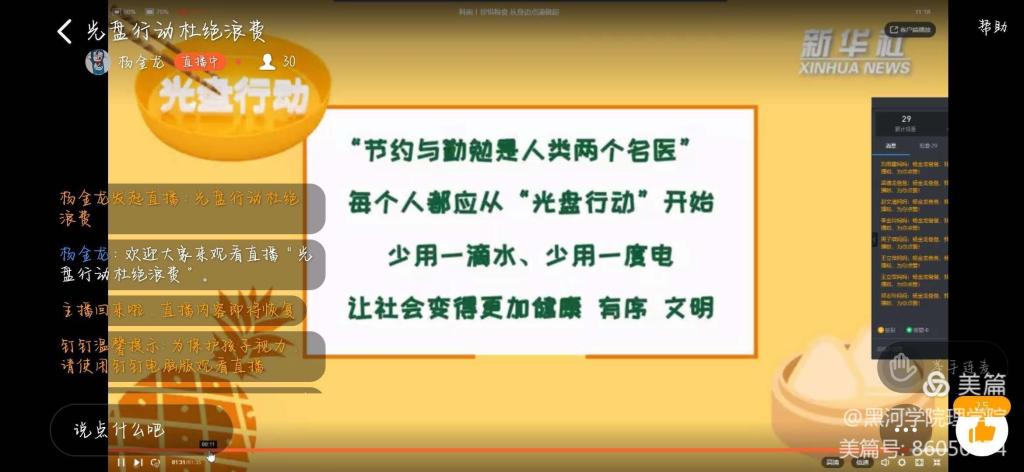 3. 践行光盘行动。我院向全体学生发出倡议,培养节约粮食好习惯,通过班会向学生讲述节约粮食的重要意义,营造浪费可耻、节约为荣的良好氛围,希望学生返校后,按需点餐,传递勤俭节约新风尚。我院通过多种形式引导学生明确校园疫情防控要求,提高学生自我防护能力,让学生逐渐适应常态化疫情防控条件下的学习生活新模式。