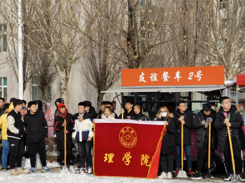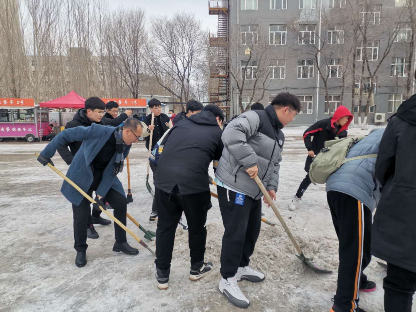 师生志愿者们拿着铁锹、推雪板等清雪工具,不畏天气寒冷、路面湿滑,鼓足干劲,经过一个多小时的共同努力,校园内的积雪基本得到清除。在热火朝天的清雪活动中,志愿者与工作人员的身影成为校园内最靓丽的一道风景线。