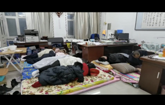 为方便学生顺利有序离校,减轻学生的心理负担,让服务更便捷更贴心,理学院管理人员一直处于战时状态,每天都忙到后半夜,有时忙的忘记了吃饭,后半夜忙完了学生,所有人员在办公室席地休息。