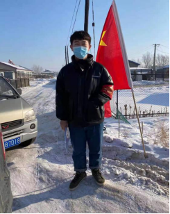 陈佳男,男,2001年1月出生,共青团员,黑河学院理学院20级电子专业学生,现在黑龙江省肇东市五站镇大翁村做志愿者,主要工作就是排查进出人员身份,扫码、测量体温等工作。