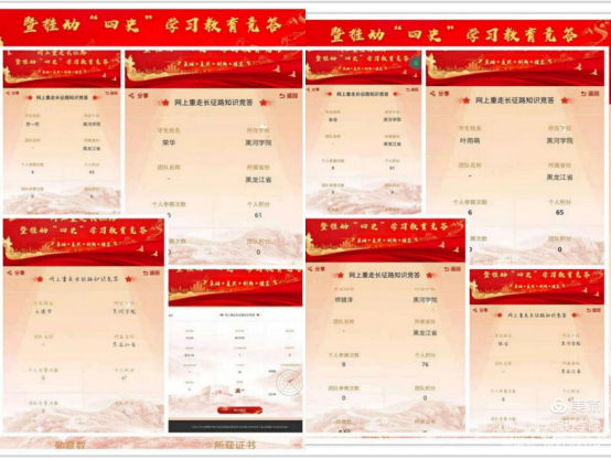 为精准推进“四史”学习教育活动,引导我院青年学生从历史中汲取智慧和力量,厚植家国情怀,增强使命意识。按照黑龙江省委“网上重走长征路”暨推动“四史”学习教育活动通知,结合黑河学院党委宣传统战部工作安排,理学院于1月22日-1月30日组织学生开展“线上”学习活动,成效显著。