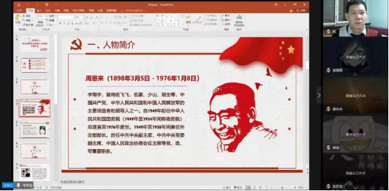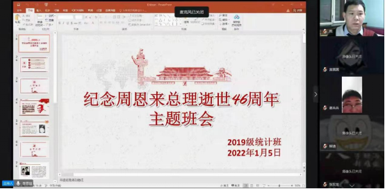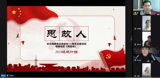 本次纪念活动各班级能够积极响应,并收获了良好的效果,其中争创周班的19级统计班,全体同学们共同在线上观看了电影《周恩来》,重温了周总理那段艰苦奋斗的岁月。19级统计班班长谢冰冰在班会上为同学们简述了周恩来总理的一生,并且号召同学们要像周恩来总理学习,坚定理想信念,树立远大理想。本次活动的开展使同学们更加深入的了解到周总理感人至深的家国情怀,这对树立学生正确的世界观、人生观、价值观有一定积极影响。