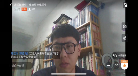 为应对当前复杂严峻的毕业生就业形势,稳步推进2022届毕业生顺利就业进程,落实理学院就业专班关于毕业生就业会议精神。2022年2月22日晚8点,理学院学工办利用钉钉平台召开理学院2022届毕业生就业会议,理学院全体辅导员老师、2022届毕业生参加会议,会议由理学院就业办公室主任陈佳明老师主持。