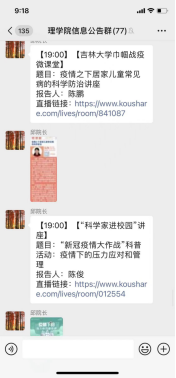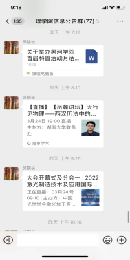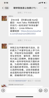 学院领导高度重视此次活动,带头在理学院师生群里转发由全国知名的学者专家讲解科学和科技方面的讲座链接,方便教师可以利用无课时间选择收看,为我院教师提供课程思政方面的参考材料。