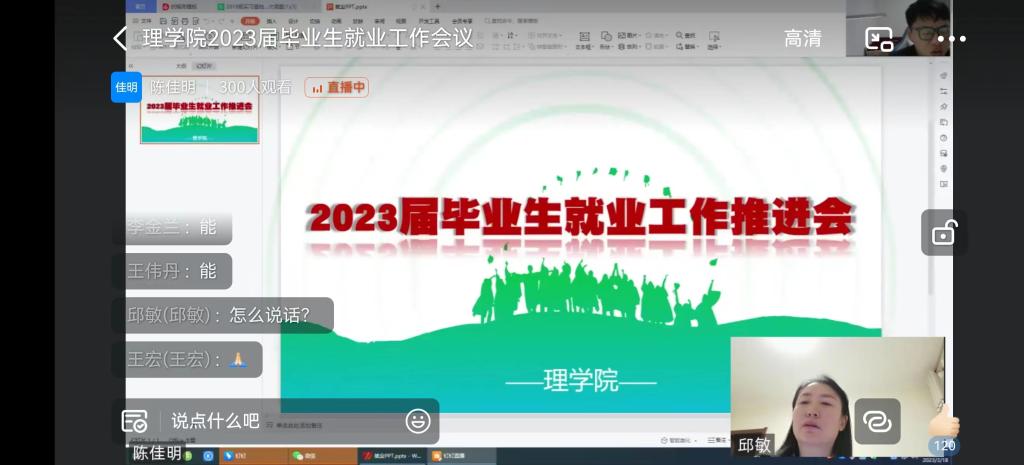 2023年3月18日晚,理学院召开了2023届毕业生就业工作推进会,理学院2023届毕业生和全院教师参加了本次会议。