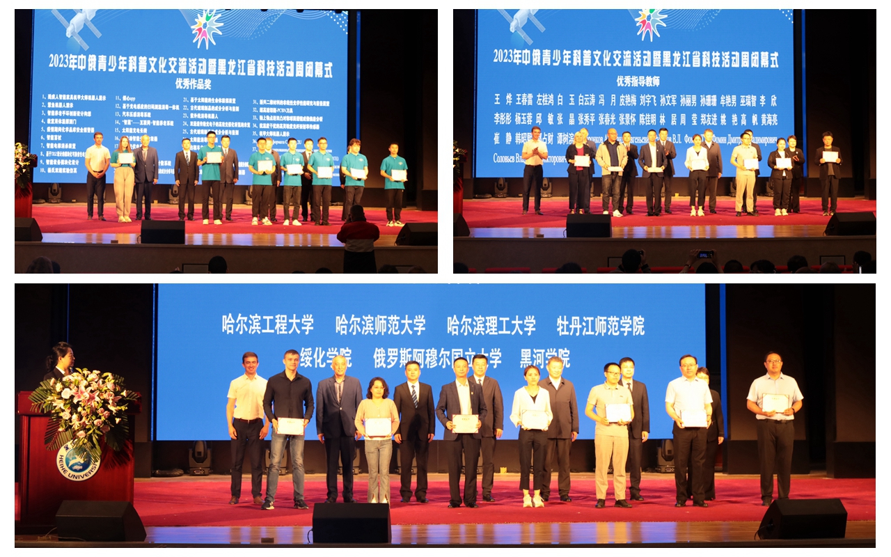 闭幕式上,宣读了2023年中俄大学生科技创新论坛优秀作品奖、优秀指导教师奖、优秀组织单位奖获奖名单。与会领导为获奖单位、人员颁奖。