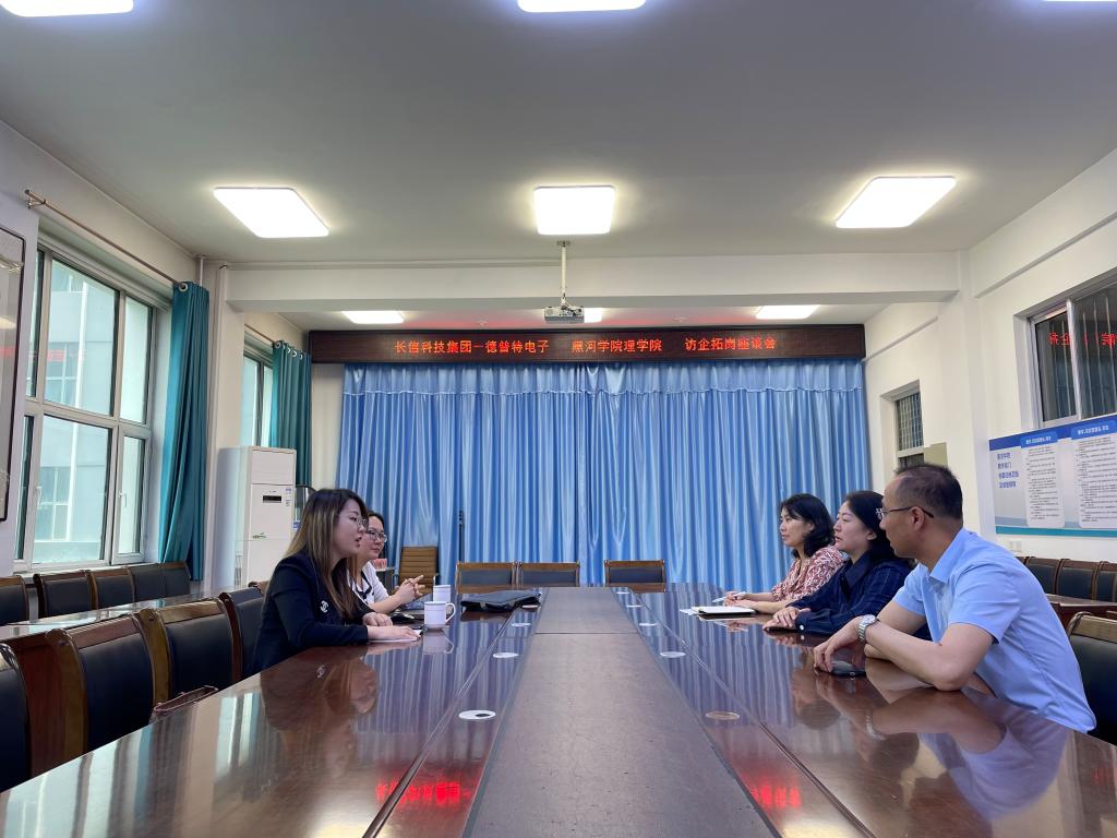 2023年6月14日,理学院邀请东莞市德普特电子有限公司来我院进行访企拓岗活动,并面向2023届未就业学生、2024届毕业生进行专场就业宣讲会,会后理学院院长邱敏、副院长张秀平、党总支副书记与德普特电子有限公司人事经理周冬兰进行访企拓岗座谈会,并与15日面向求职学生开展面试,此次招聘学生共投递简历86人、通过面试34人。