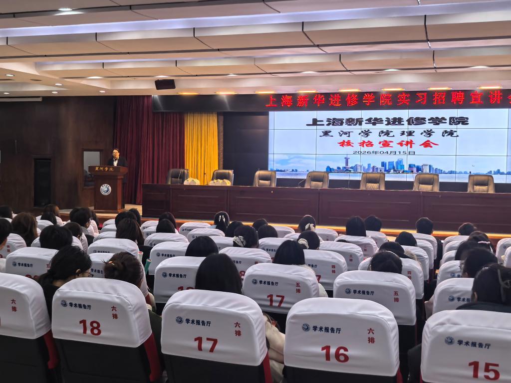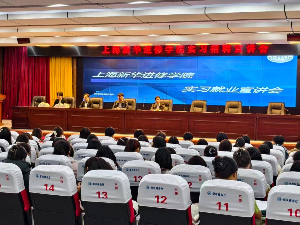 为进一步深化校企合作,拓宽2023级学生实习与就业渠道,引导学子合理规划职业发展,2026年4月15日,上海新华进修学院专场实习就业宣讲会在我校求知楼报告厅顺利举办。