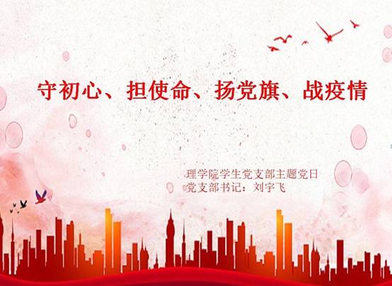 庚子开年,在家人团圆,气氛热闹之时,一场没有硝烟的抗疫阻击战悄然打响。疫情就是命令,防控就是责任。当前,新冠状肺炎形势依然严峻,坚持打赢疫情防控阻击战是我们每一个人的期待,为了加强学生党员的爱国主义教育,提升学生党员的思想站位,充分发挥每位党员的战斗堡垒作用和党员的先锋模范带头作用,经党总支周密安排,细心计划的以“守初心、担使命、扬党旗、战疫情”为主题的线上党日活动于3月15日在学生党支部如期开展。