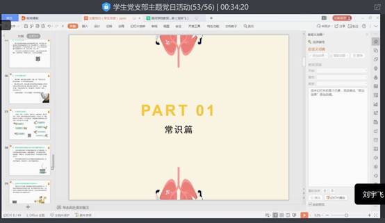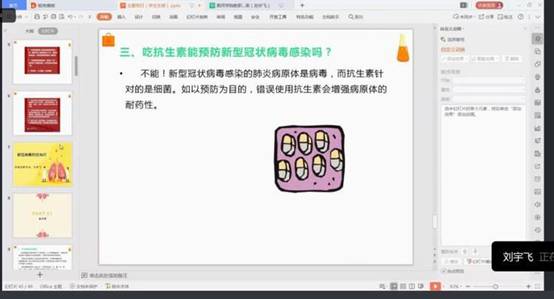第二项:为强化防控知识的学习,如何做好个人保护。刘宇飞老师结合自己专业知识普及新冠病毒防控知识。