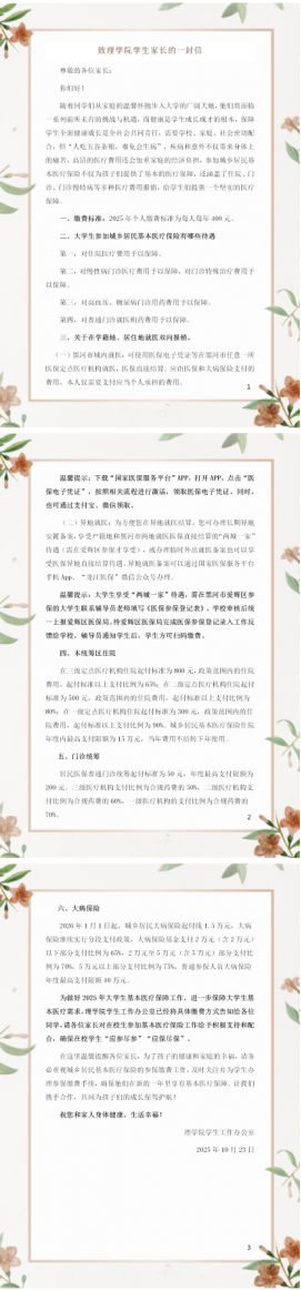 精心撰写《致家长的一封信》,详细介绍医保政策的意义、参保流程及报销比例等内容,通过线上平台发送至每位家长。信件通俗易懂、解读清晰,有效增强家长对医保工作的理解与支持,为家校协同推动参保奠定基础。