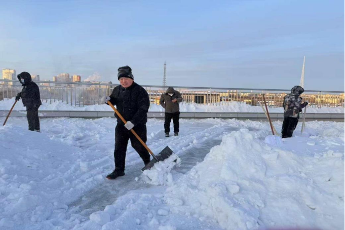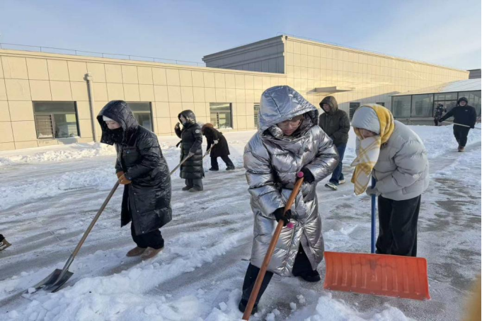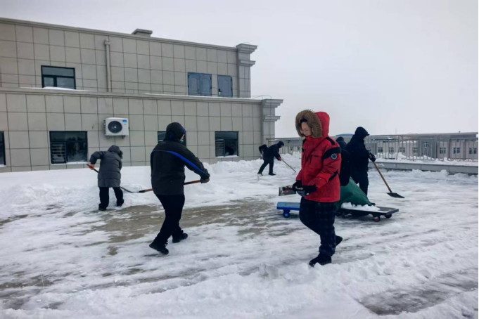 清雪现场,党员干部们充分发挥先锋模范作用,冲锋在前、勇挑重担。大家分工明确、配合默契,有的负责屋顶积雪铲除,有的负责地面残雪清扫,有的负责疏导周边通行路线,形成了“人人参与、齐心协力”的清雪热潮。凛冽的寒风挡不住大家的工作热情,冰冷的积雪冻不住为民服务的初心,党员干部们用双手清扫出安全通道,用行动温暖了冬日校园。“保障学生的安全是我们义不容辞的责任,”参与清雪的党员教师表示,“这次扫雪行动既是一次践行宗旨的志愿服务,也是一堂锤炼党性的实践党课。我们将始终坚持党建引领,密切关注师生急难愁盼问题,以实际行动践行育人初心,为学校高质量发展和学生健康成长保驾护航。”