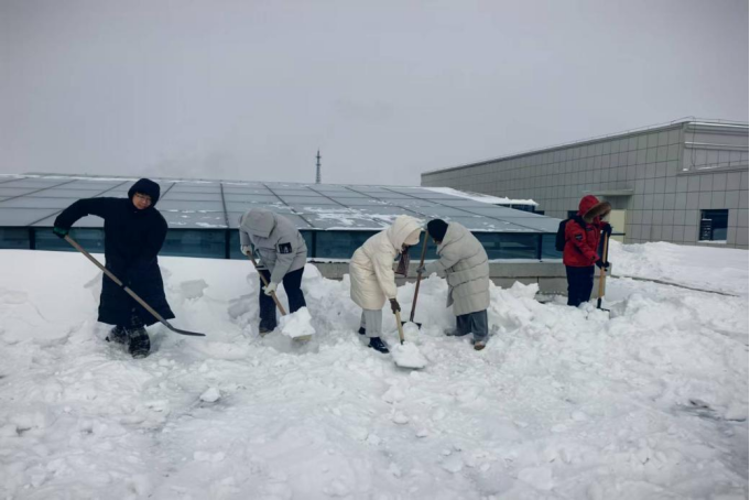 理学院党总支在获悉图书馆屋顶积雪情况后,第一时间召开工作部署会,向全院教职员工发出志愿服务倡议,明确“党员带头、领导先行、分工协作、快速推进”的工作要求。学院领导班子成员率先垂范、主动靠前,党支部迅速动员部署,广大党员干部积极响应、踊跃报名,快速组建起一支清雪志愿服务队。按照图书馆统一安排,志愿服务队于12月1日分四个时间段有序开展清雪工作。尽管当日气温较低、寒风凛冽,但大家热情高涨、干劲十足,手持铁锹、扫帚等工具迅速投入清雪行动,以最快速度推进积雪清理工作。