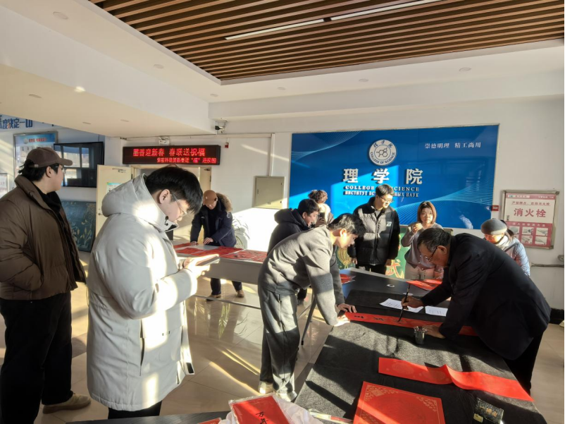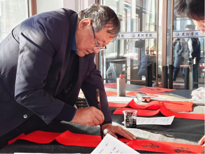 为弘扬中华优秀传统文化,营造喜庆祥和的氛围,进一步丰富校园文化生活,增进师生之间的情感交流,2025年12月12日下午,理学院于黑河学院探知楼一楼大厅开展“墨香迎新春,春联送祝福”暨张密林教授新春送“福”进校园活动,特邀黑河学院张密林教授在春节来临之际,现场书写春联并赠予师生。