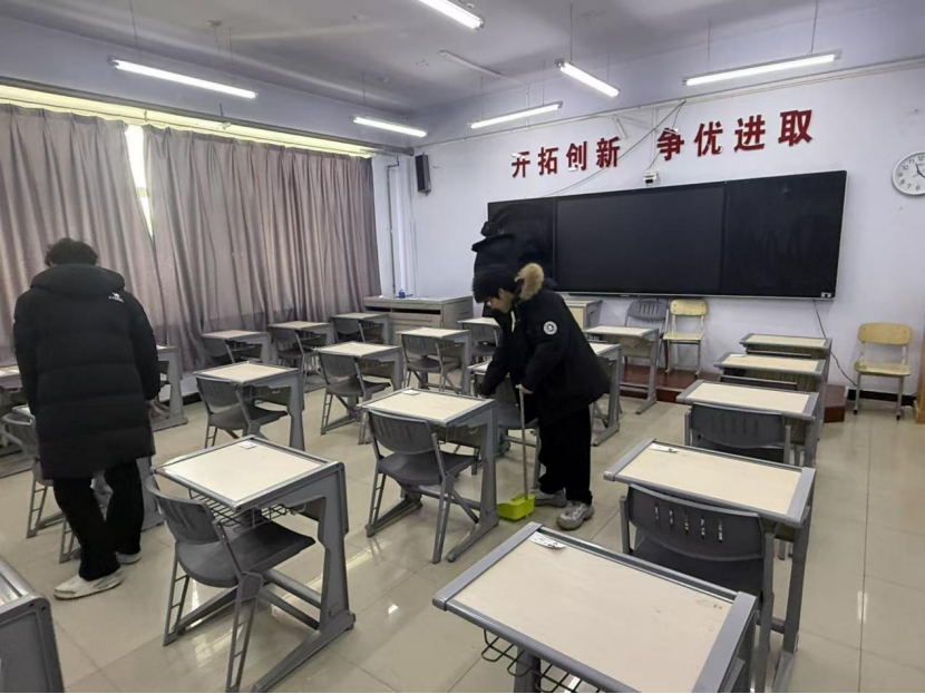 为深入学习贯彻习近平新时代中国特色社会主义思想中“奉献、志愿、劳动最光荣”的重要理念,切实培养同学们的集体主义精神与劳动意识,打造洁净雅致的教学空间,助力学生养成良好公共卫生习惯,黑河学院理学院于2025年12月13日在探知楼组织开展“‘净’待期末,焕新教室”志愿服务清扫活动。
