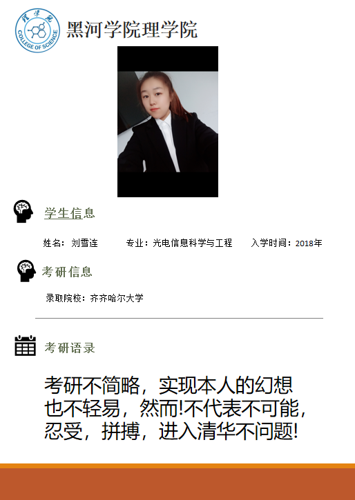 2018级光电信息科学与工程刘雪连——齐齐哈尔大学