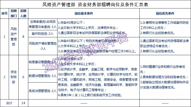 1.龙江银行风险资产管理部资金财务部招聘岗位及条件汇总表