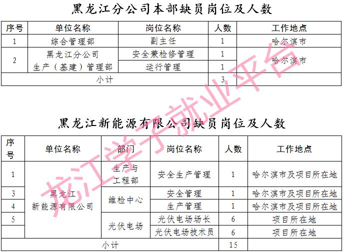 国家电投集团有限公司黑龙江分公司(以下简称黑龙江分公司)于2015年12月注册成立,经过两年多的开拓与发展,截至6月底,累计投运17个光伏项目,总装机容量478MWp,实现了从"零资产"到"自负盈亏"的跨跃。为进一步加强黑龙江分公司及所属单位的生产管理能力,现面向集团公司系统内公开招聘缺员岗位,具体情况如下: