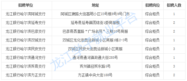 本招聘公告最终解释权归属龙江银行哈尔滨分行人力资源部。