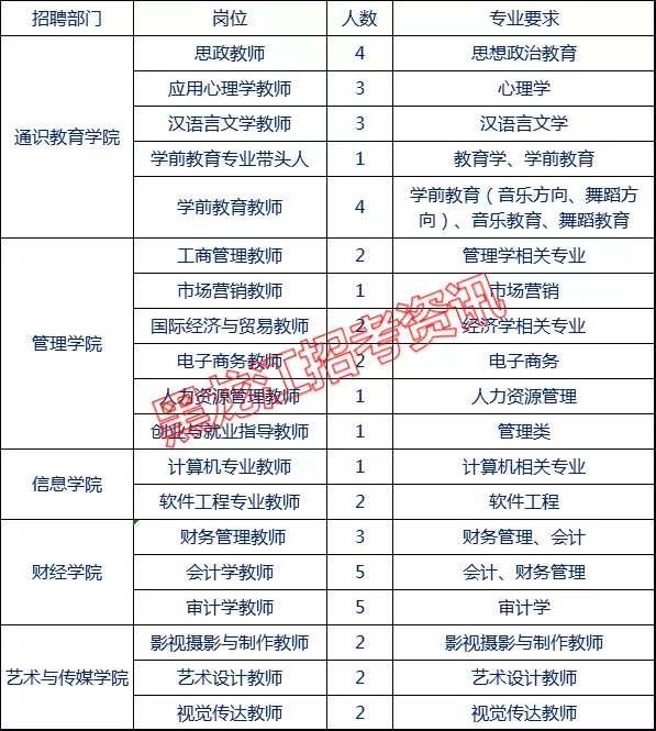 4.职称要求:专业带头人需要副高级以上职称;教师岗位具有中级及以上职称者优先。