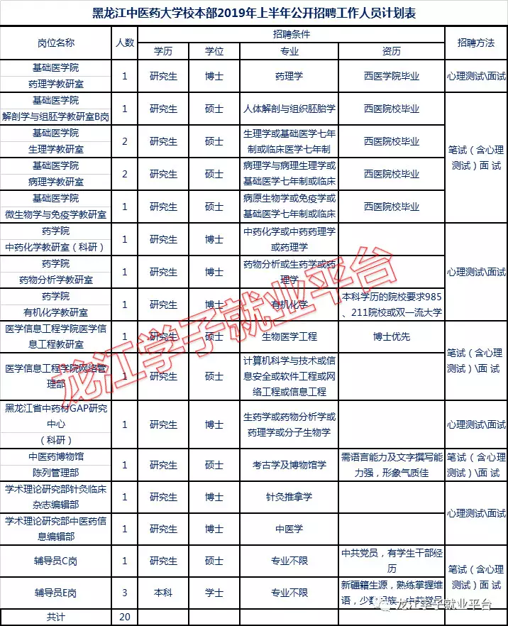 【20人·教师、辅导员】黑龙江中医药大学校本部2019年上半年公开招聘工作人员公告