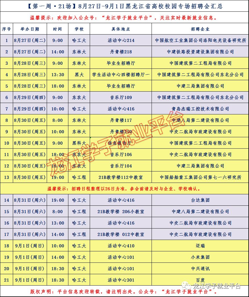 【21场·职等你来】8月27日-9月1日黑龙江省高校校园专场招聘会汇总