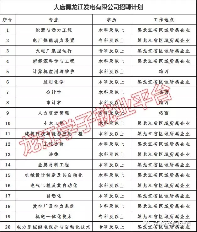 2020年,大唐黑龙江发电有限公司面向广大应届毕业生招聘能源与动力工程、电气工程及其自动化等专业的毕业生,欢迎大家踊跃报名。