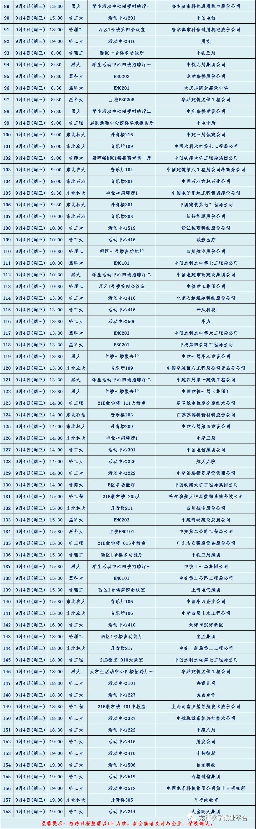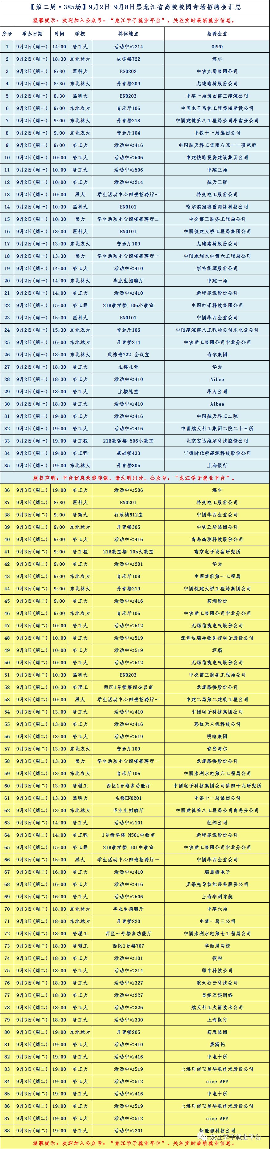 【385场·职等你来】9月2日-9月8日黑龙江省高校校园专场招聘会汇总