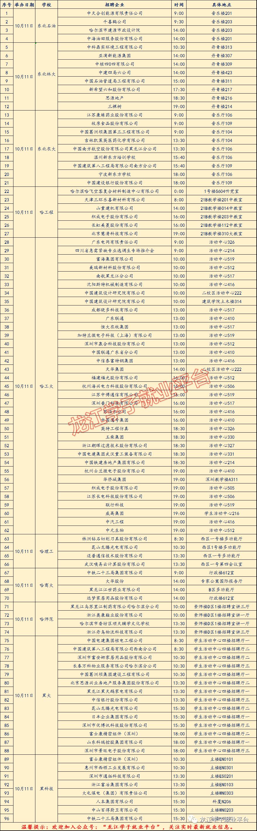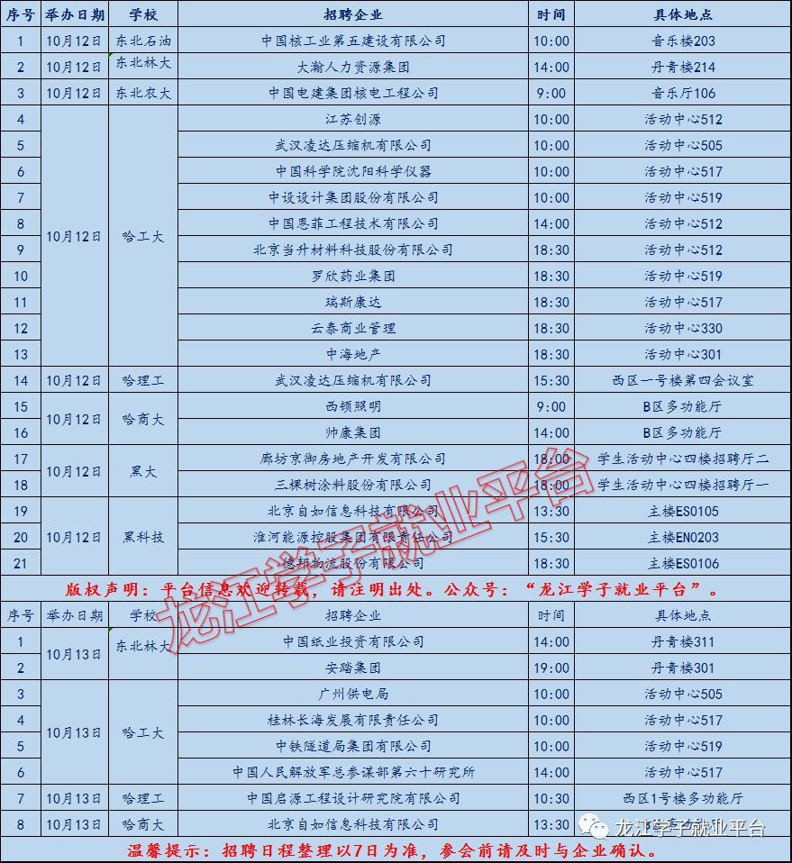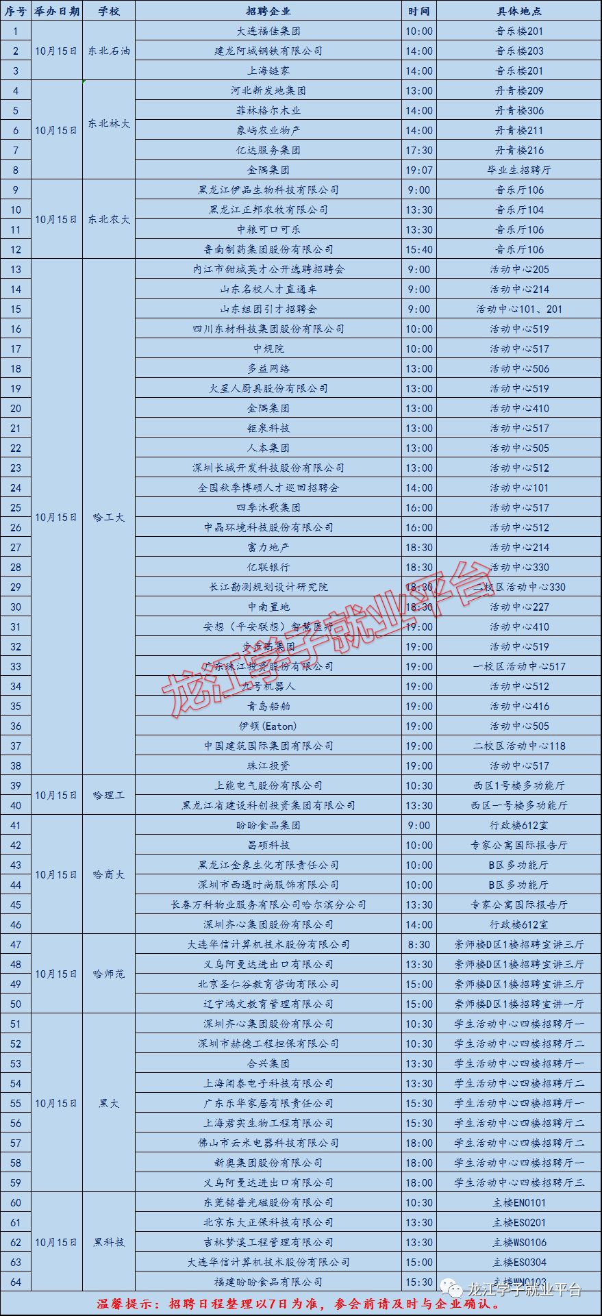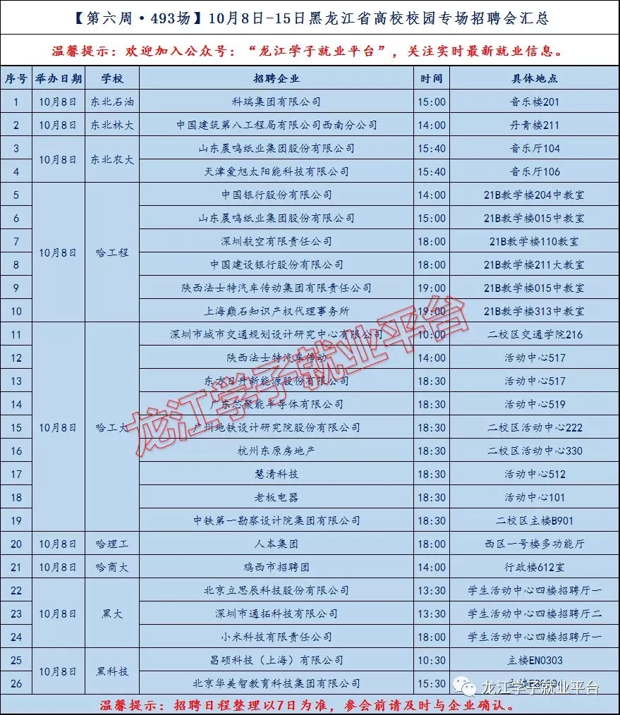 【493场】10月8日-15日黑龙江省高校校园专场招聘会汇总,职等你来......