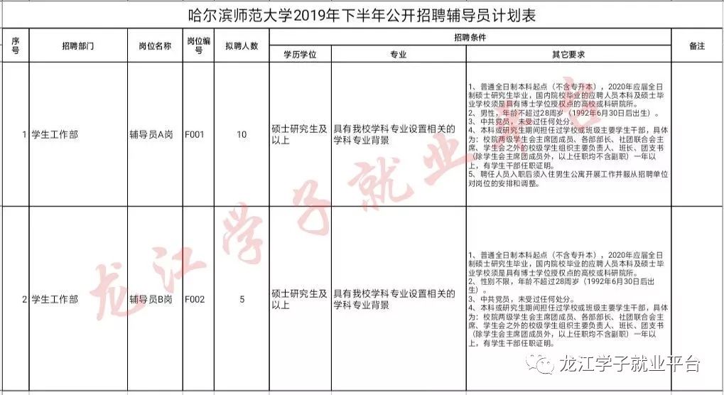 (1)《哈尔滨师范大学2019年下半年公开招聘辅导员报名表》;
