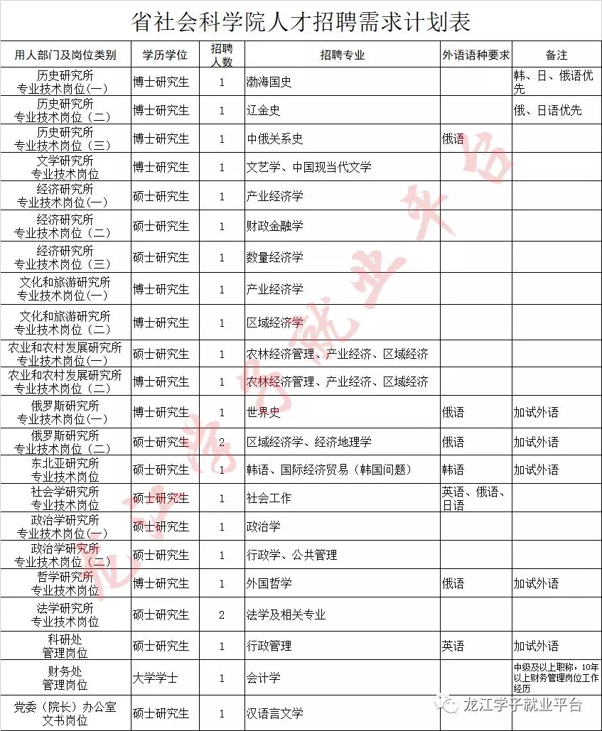 5.考试结束后,根据应聘人员总成绩由高分到低分等额确定体检和考核人选,并在黑龙江省社会科学院网站公示3个工作日。