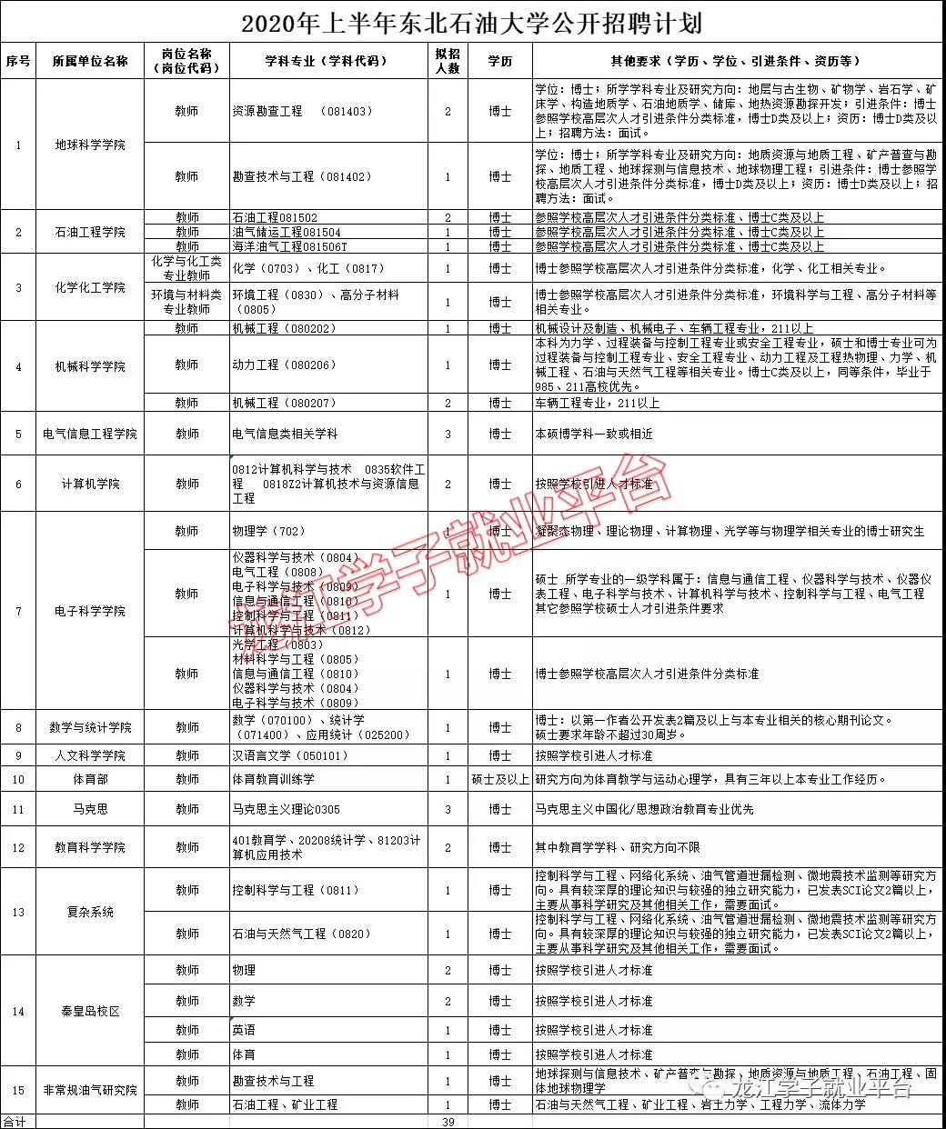 【15人】东北石油大学2019年下半年招聘计划