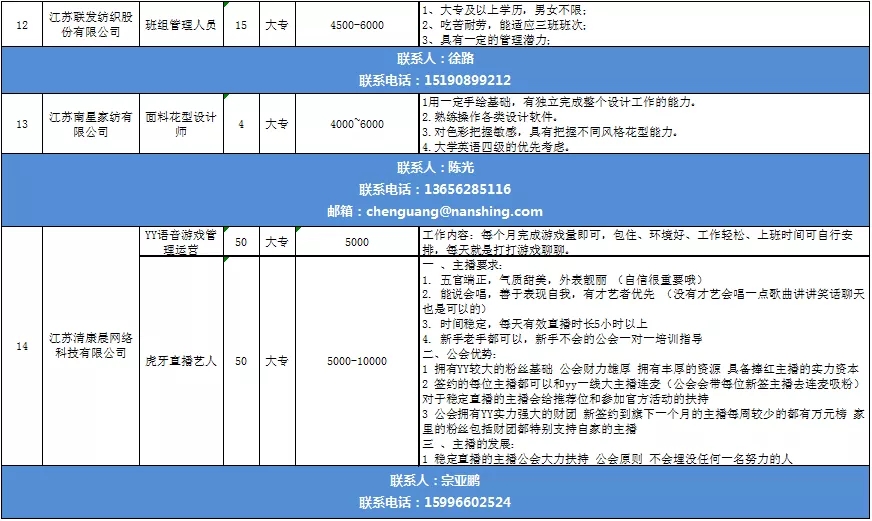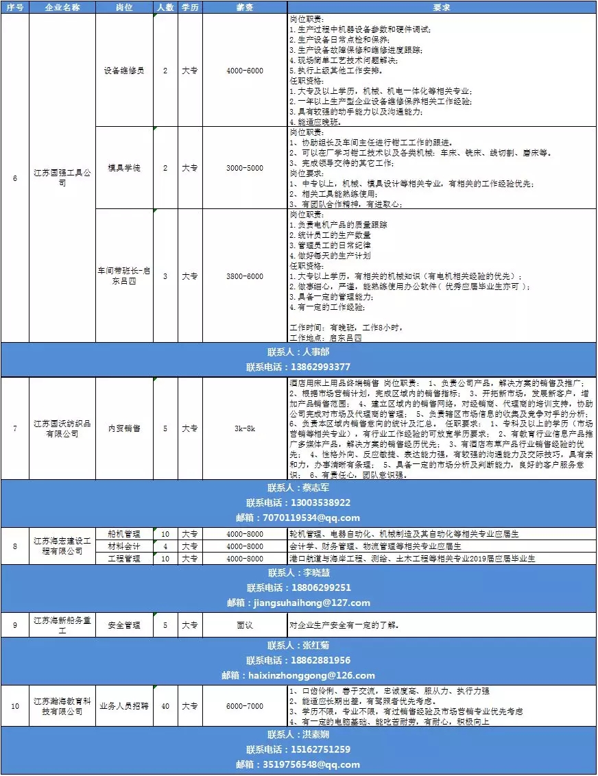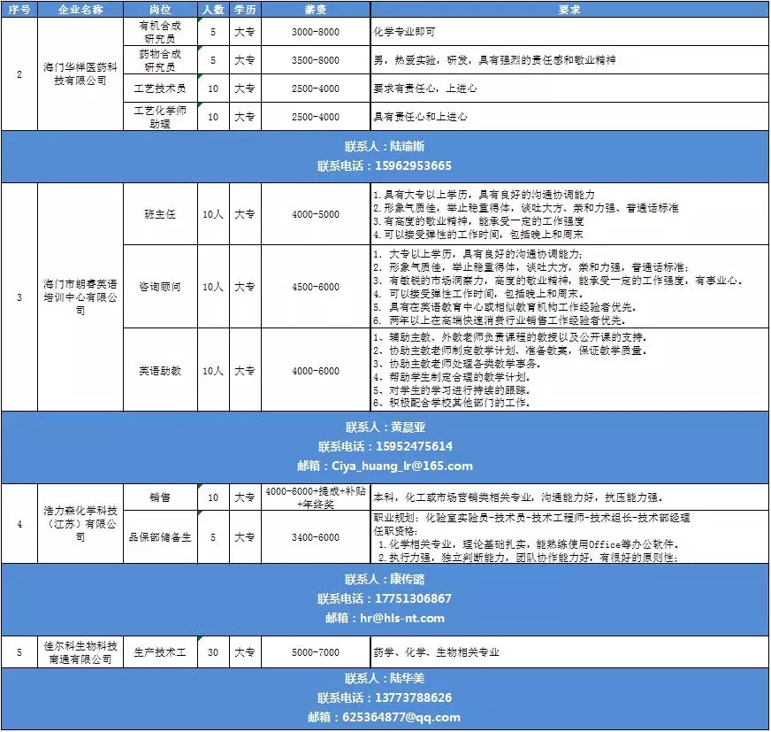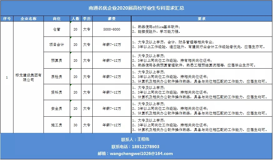 快来通过《南通名优企业2020届高校毕业生专科以上需求汇总》(附件1)、《南通名优企业2020届高校毕业生本科需求汇总》(附件2)查询用人单位邮箱和电话,与满意的单位进行在线接洽吧!