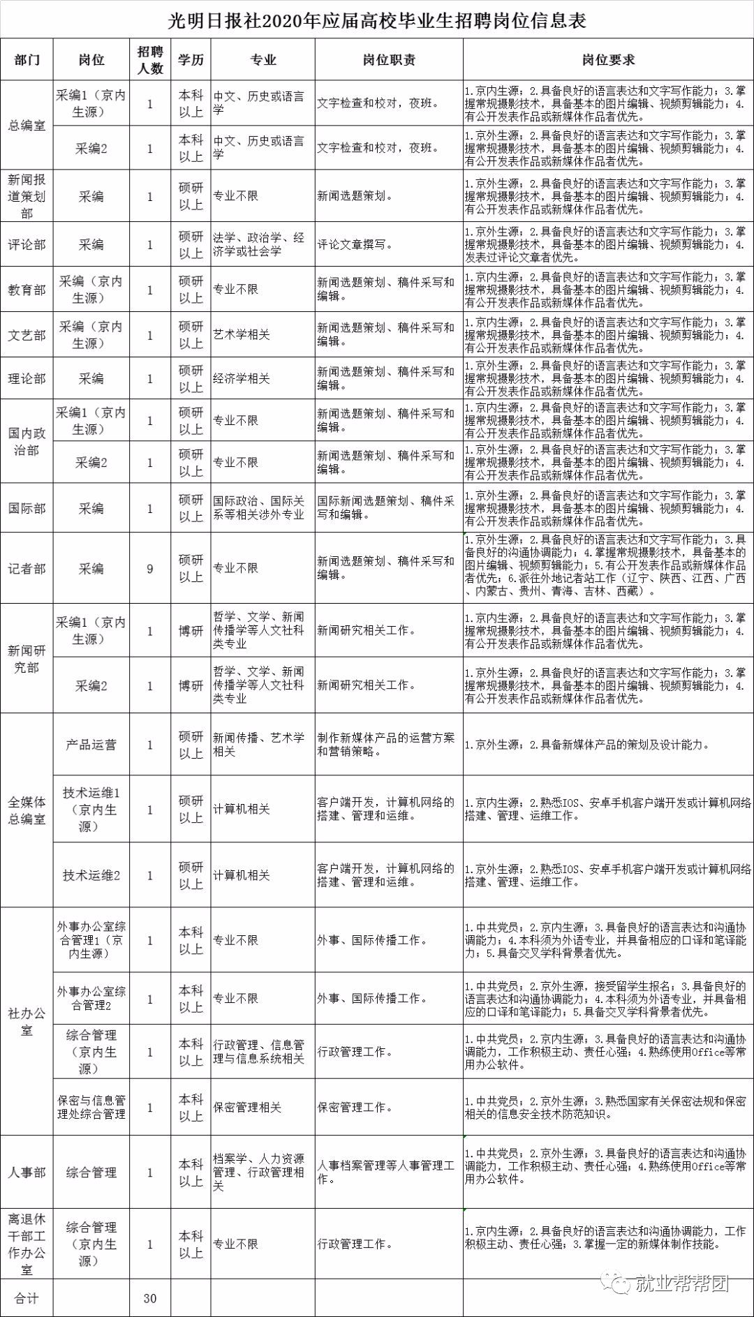 2.海外留学归国人员仅可报名新媒体中心英文客户端编辑岗位(岗位12)和视频/美术编辑岗位(岗位13);
