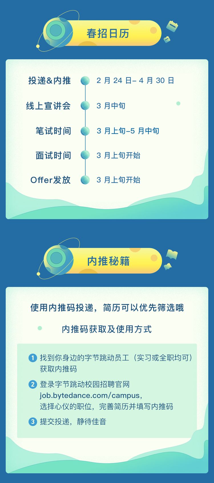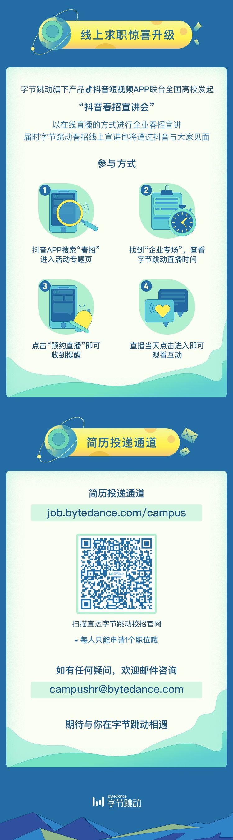 字节跳动2020春季实习生招聘及校招全职补录正式启动!