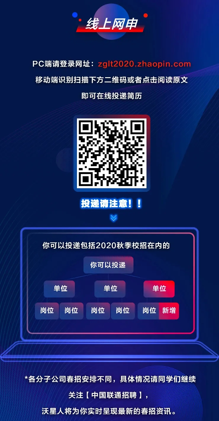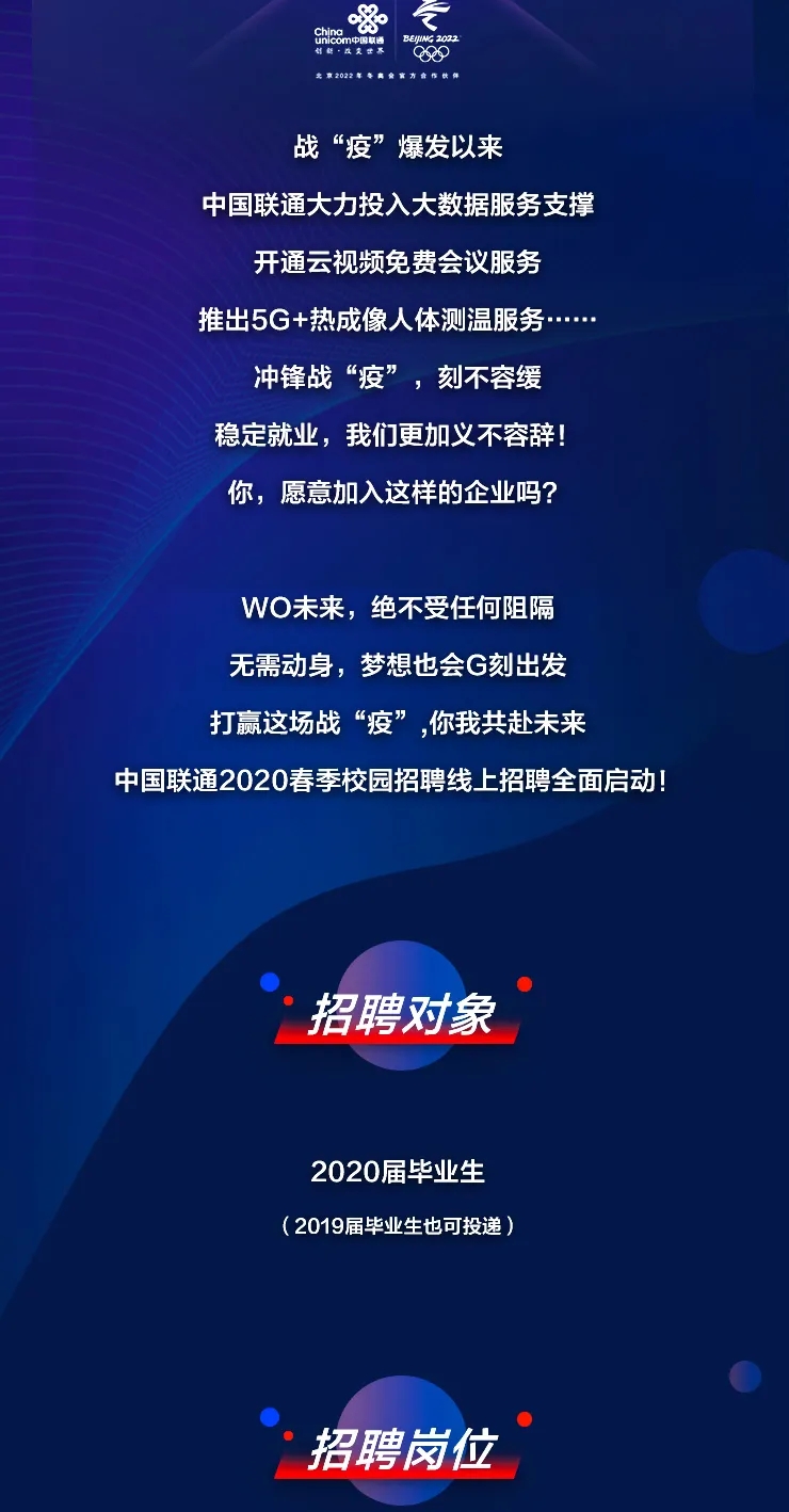 【校招】超多岗位!中国联通2020线上春季校招来啦