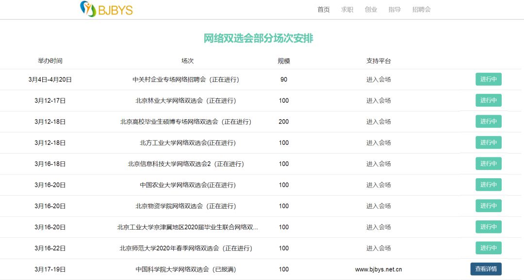 点击首页“北京地区2020届高校毕业生网络双选会”系列活动图片