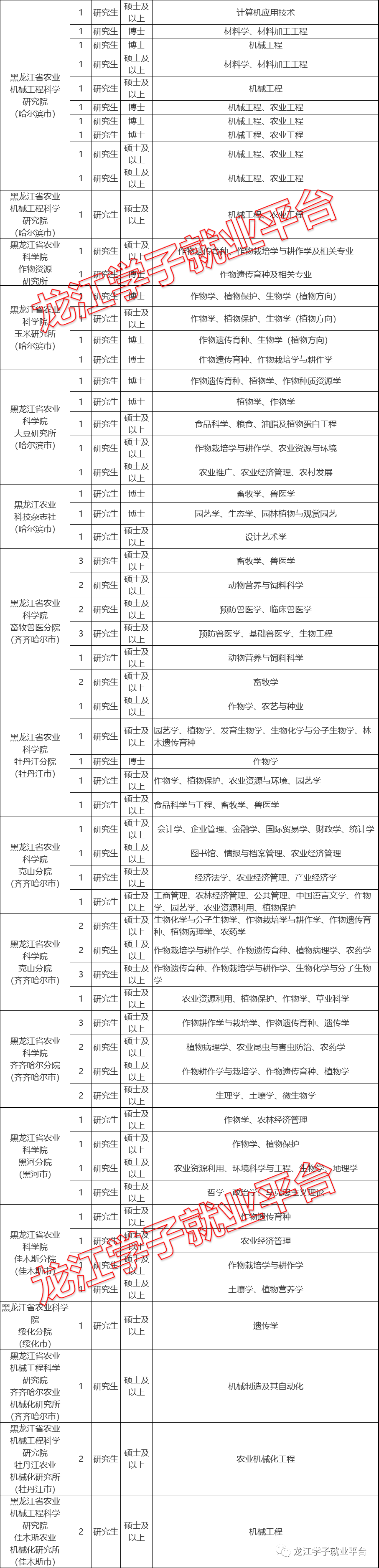 1、黑龙江省农业科学院及所属事业单位2020年公开招聘计划表