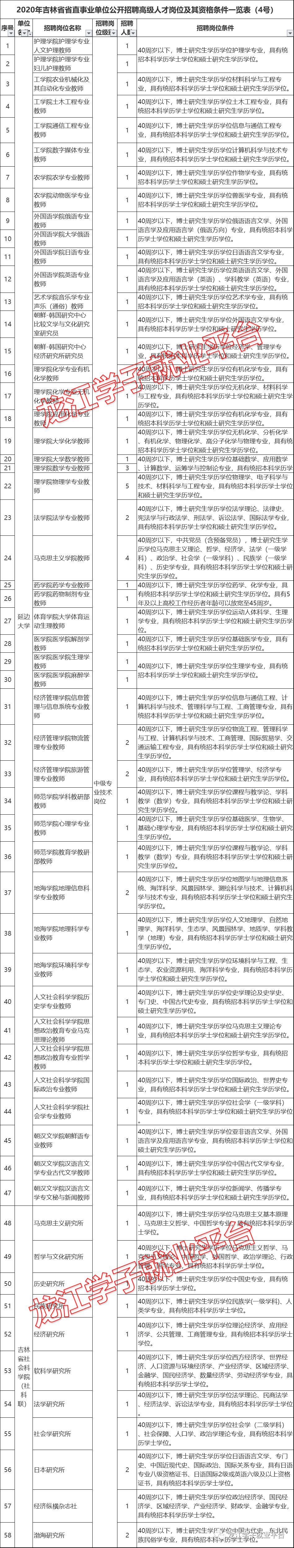 本公告共招聘高级人才73名,具体招聘岗位及条件详见《2020年吉林省省直事业单位公开招聘高级人才岗位及其资格条件一览表(4号)》(附件1)。