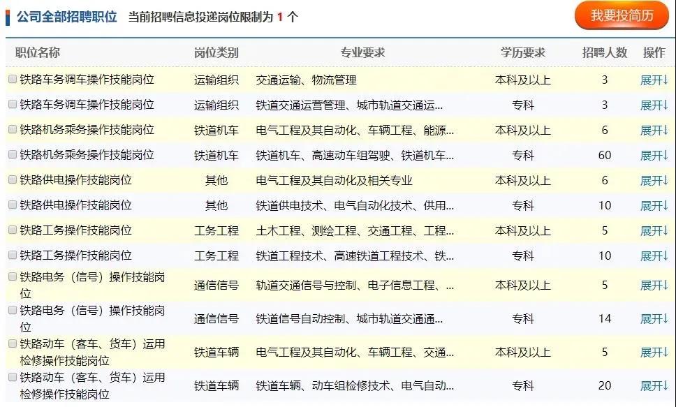 本次招聘岗位均为铁路运输生产一线操作技能岗位,具体招聘岗位、专业要求、人数和工作单位等见附件。
