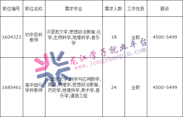 初中语文、初中物理、初中化学、初中政治、初中生物、初中地理、初中音乐学科教师若干名。